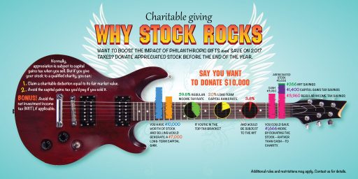 We’re entering the giving season, and if making financial gifts to your loved ones is part of your plans — or if you’d simply like to reduce your capital gains tax — consider giving appreciated stock instead of cash this year. Doing so might allow you to eliminate all federal tax liability on the appreciation, or at least significantly reduce it.