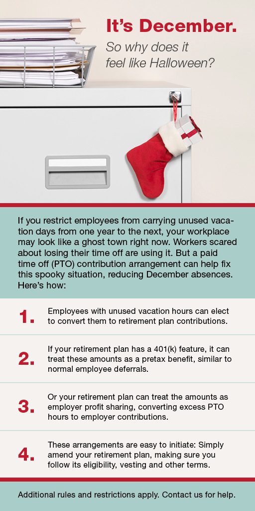 Because it’s actuarially driven, the contribution needed to attain the projected future annual benefit may exceed the maximum contributions allowed by other plans, depending on your age and the desired benefit. You can make deductible 2017 defined benefit plan contributions until your return due date, provided your plan exists on Dec. 31, 2017.